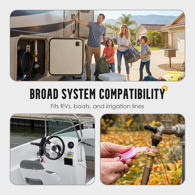 Universal compatibility – Thanks to its standard connection, it can be easily attached to most water connections on motorhomes and garden hoses. This versatility makes it an indispensable tool not only for motorhomes, but also for boats and irrigation systems.