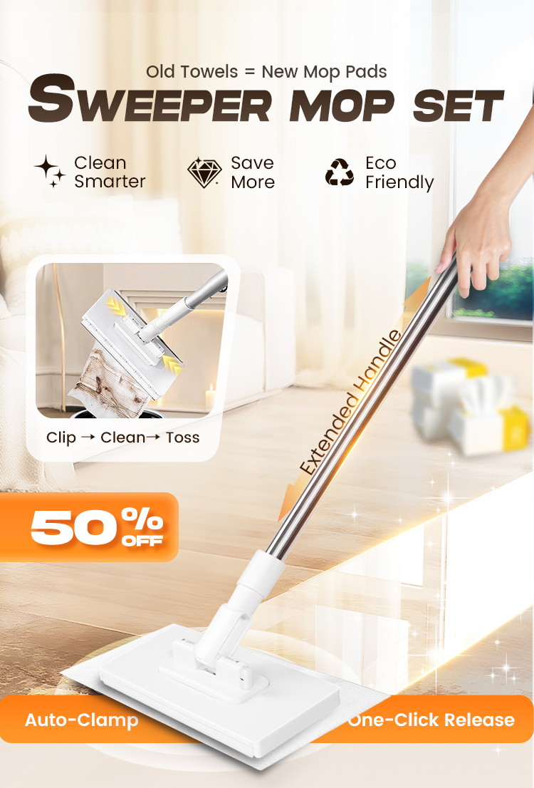 🧹💥 Last Day 50% Off! Disposable Dust Mop with 4 Reusable Cloths – 2-in-1 Cleaning Kit for Quick & Easy Floor Care ✨🧼