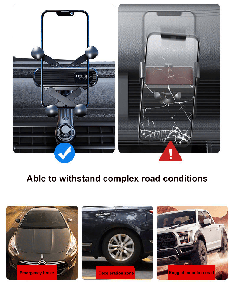 【Gravity vehicle-mounted mobile phone &seat-one-handed operation】 when placing the mobile phone, the gravity system will be activated by the weight of the mobile phone itself, which is very convenient and can be put down and taken out with only one hand.