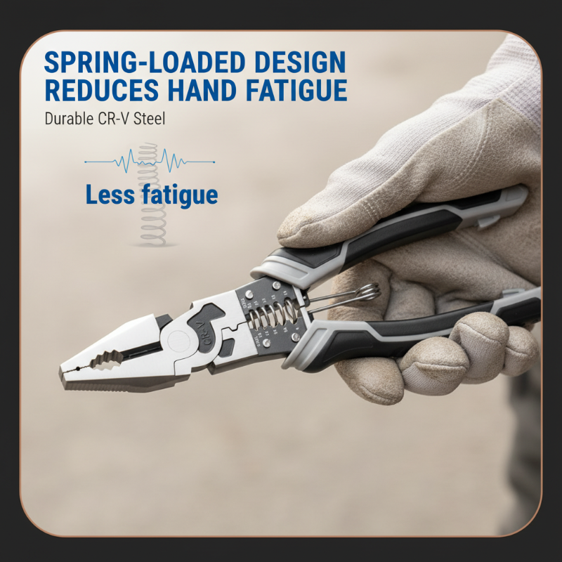EFFORT-SAVING SPRING MECHANISM - Features an integrated spring that reduces hand fatigue by automatically reopening the jaws. The high-leverage design boosts your power by 70%, allowing for effortless operation during repetitive tasks.
