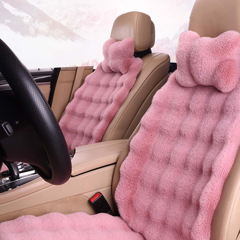 THICK PLUSH MATERIAL: Experience instant warmth and supreme comfort on chilly drives. The simulated rabbit fur texture provides a luxuriously soft feel, turning every journey into a cozy and enjoyable escape from the cold.