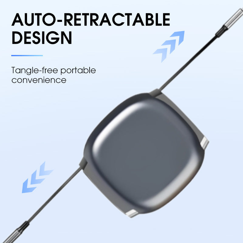 TANGLE-FREE, CARRY-ANYWHERE CONVENIENCE - Press the button to retract from 2m to compact pocket size. No more messy coils or knots—ideal for travel, offices, or bedside use. The built-in mechanism withstands 10,000+ retractions.