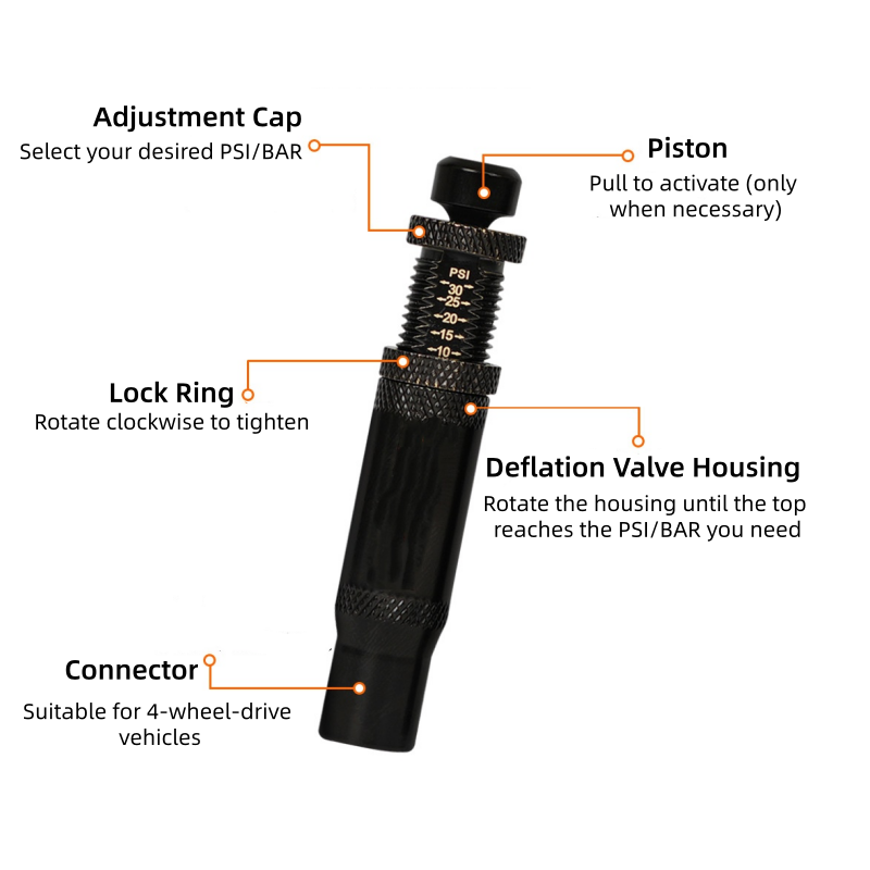 AUTOMATIC DEFLATION - Set your desired tire pressure and the valve automatically stops deflating once the target is reached. This saves you time and ensures all tires are at the exact same pressure for optimal performance.
