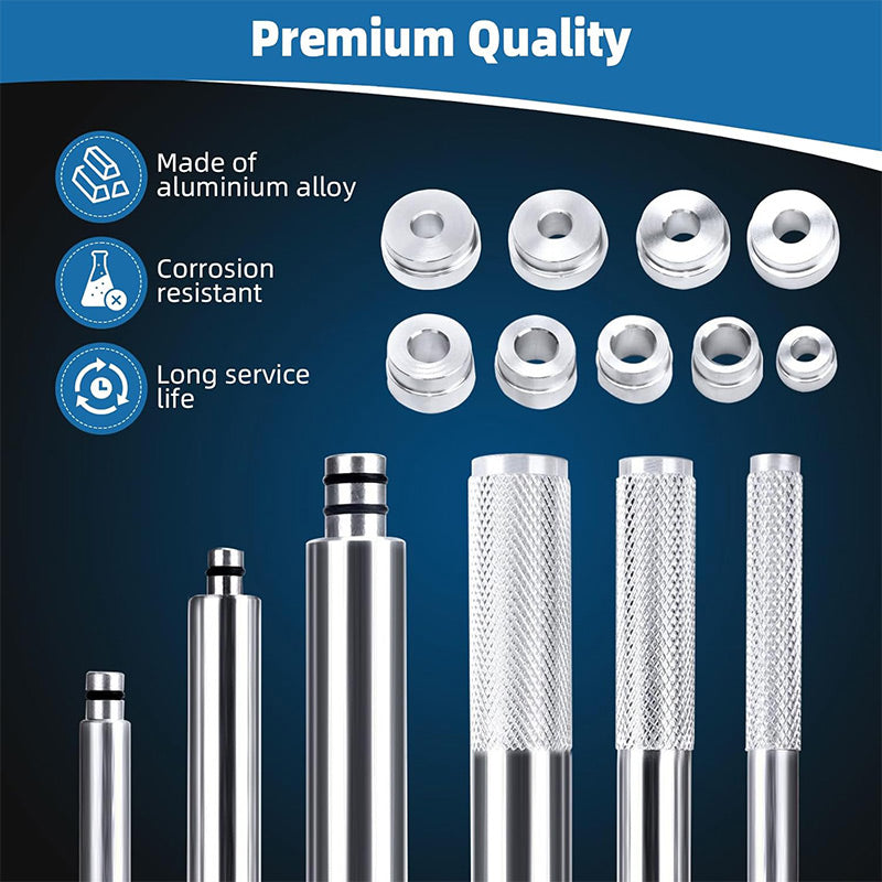 PRECISION ENGINEERED FOR EFFORTLESS REPAIRS: Designed with automotive enthusiasts and professionals in mind, this tool set ensures seamless bearing installation and removal. The precision-crafted aluminum alloy construction guarantees durability and reliability, making even the toughest jobs manageable.